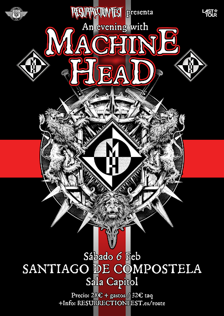 Desde hace muchos años nos venís pidiendo a una de las bandas más en forma del metal hoy en día, una de las bandas más deseadas tanto por vosotros como por nosotros. Ya que hasta dentro de un buen tiempo no pisarán festivales en ninguna parte del mundo y por tanto no los veremos en el Resurrection Fest hasta dentro de unas ediciones, al menos hemos querido que pasen de gira por Galicia. Nos complace presentar la primera edición del Route Resurrection Fest de este año, la primera fecha de presentación del festival: ¡Machine Head!