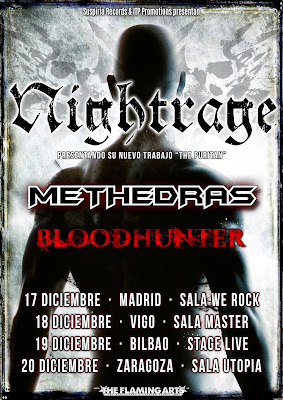 ANDREA (BAJO): Hola Pilaria. En primer lugar muchas gracias por haber acogido aquí a Methedras con esta entrevista, para nosotros significa mucho poder presentar a la banda a quien todavía no la conoce… Sí, ya hemos estado dos veces en España, primero de gira con Hirax, Bonded By Blood y Nuclear en marzo y abril de 2014, y luego de nuevo con Evil Invaders en diciembre de 2014… Golpeamos ciudades increíbles como Almería, Bilbao, Badalona, Oviedo, Palencia y Zaragoza, y estamos muy interesados en ir a España de nuevo ya que creemos que los metaleros españoles están entre la multitud más caliente y más loca de todo el mundo !!Esta oportunidad con Nightrage y Bloodhunter vino gracias a nuestra agencia, The Flaming Artes, que es la misma de Nightrage, que por otra parte también se encargó de montar tres conciertos en Italia antes de la parte española, así que aquí estamos.