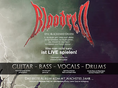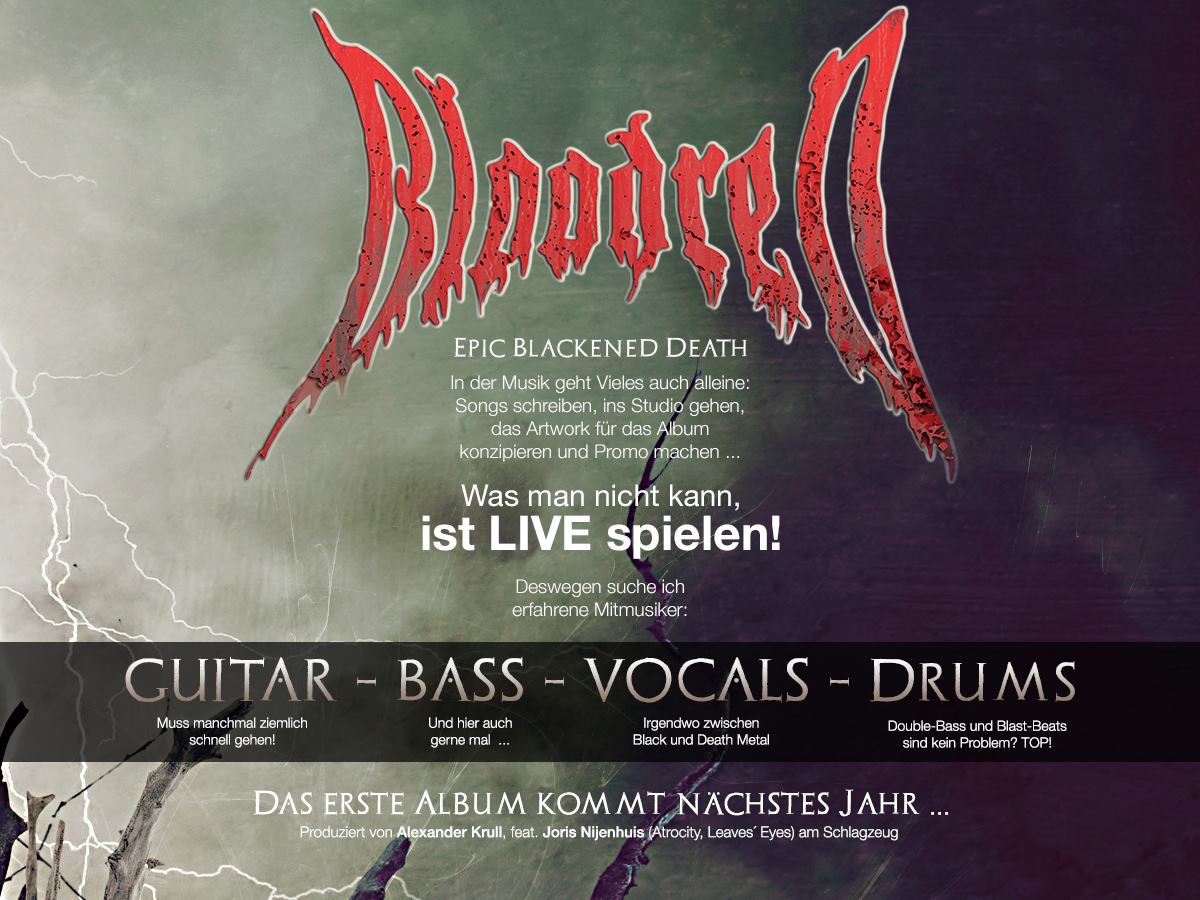 BLOODRED: BLOODRED fue fundada en 2009 cuando empecé a escribir canciones con este nombre. Desde el primer día la música estaba arraigada en Black Metal y Death Metal Melódico, pero también he añadido un poco de Thrash y sabores de Doom. A mediados de 2013 me puse en contacto Alex Krull porque quería grabar los primeros temas en un estudio profesional. Su Mastersound Studio está a sólo unos pocos kilómetros de distancia de donde yo vivo, así que esta era la opción obvia. Fue a Alex, a quién se le ocurrió la idea de pedir a Joris Nijenhuis, que es batería en Atrocity y Leaves´ Eyes, para registrar ese instrumento. En mi estudio de casa estoy trabajando con batería de software pero una real interpretada por un ser humano, por supuesto, suena mucho mejor. Así, en diciembre de 2013 y marzo 2014 grabamos dos canciones y  que aún están disponibles en el EP «The Lost Ones».  EP que fue lanzado digitalmente en junio y físicamente en agosto de 2014 y está disponible en todos los principales servicios descargables y de streaming. Las críticas que recibí por estas dos canciones son abrumadoras. Siendo un recién llegado  con  un proyecto de solo hombre  nunca me habría esperado dichos comentarios sobresalientes. «Una joya del género con sólo el primer lanzamiento», dijo un comentario. Obviamente, esto era muy alentador y así que decidí grabar el primer álbum completo, que se hizo en el verano de este año.