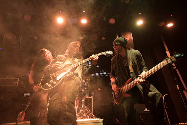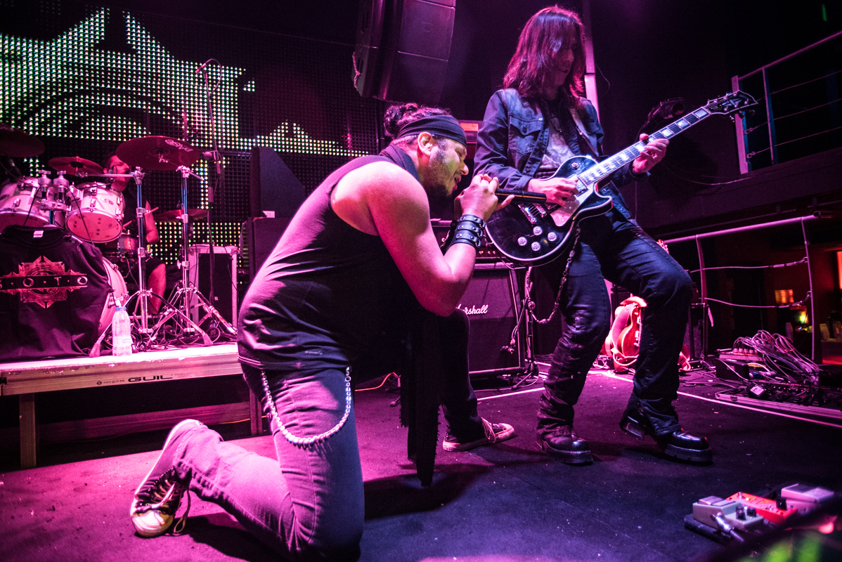 Hubo tiempo durante la hora y media larga que duró el show para todo tipo de bromas, para agradecer su presencia al público pese a la coincidencia con el fútbol o para cantar todos juntos un cumpleaños feliz anticipado a Jorge (el cuatro de abril es su aniversario), brindis con chupitos de tequila incluido. Todo ello mientras sonaban temas de los dos discos de Soto, alguno de su etapa como Jeff Scott Soto o con Axl Rudi Pell, y casi al final del concierto un medley de un par de temas de su época como cantante de Yngwie J. Malmsteen (I am a Viking y I´ll See the Light Tonight), siempre con una calidad y un sonido fantásticos, y con Salán demostrando en todo momento que es uno de los mejores guitarristas de este país (también pudimos escuchar su tema instrumental Risk).