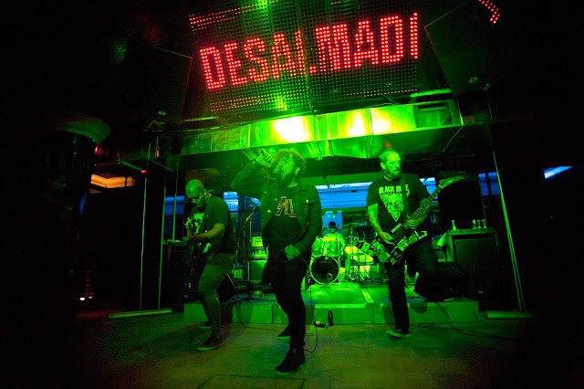 A pesar de ser los cabezas de cartel y de que como dijo su cantante, que por cierto tenía una voz brutal, era la primera vez que actuaban en Madrid los brasileños sólo pudieron tocar unos veinte minutos debido al retraso con el que había empezado el primer concierto y a que la sala cerraba a la 1 de la mañana. Personalmente no me gusta el grindcore pero hay que reconocer que dentro de dicho estilo Desalmado son muy buenos, no tienen nada que envidiar a grupos más conocidos de ese tipo de música y además tienen algunos toques de death metal que en mi caso agradecí. Desgraciadamente el sonido tampoco estuvo bien esta vez y la batería, especialmente los platos, se oía a un volumen demasiado alto, lo que unido a la velocidad y agresividad típicas del grindcore provocó que en algunos momentos se oyera un poco una cacofonía de ruido. Lo que si me gustó fue que aprovecharan la poca altura del escenario para bajarse a cantar y tocar junto al público, algo que suelen hacer muchas bandas de su estilo. Por desgracia no pude conseguir el setlist y puesto que no conocía a este grupo no se qué canciones tocaron y si se centraron más en su última publicación, el EP Estado Escravo (de hace dos años) o en su hasta ahora único álbum, llamado igual que el grupo y que sacaron en 2012.