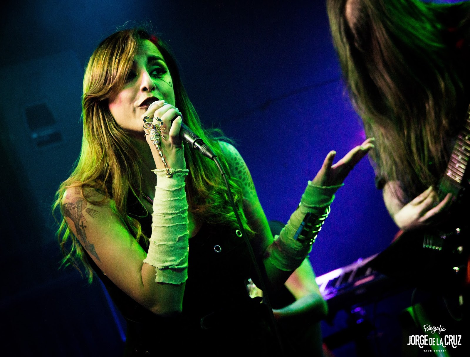 Muchas ganas tenia de ver a los madrileños y su original propuesta de orient folk egipcio. Y es que la primera vez que los vi me quedé con mal sabor de boca, pues tras los problemas técnicos y el retraso solo pudieron tocar cuatro canciones, defendiéndolas como mejor pudieron. Pero esto no fue así en Córdoba, y desplegaron todo su esplendor, además de cubrir la baja de uno de sus guitarras con un sustituto. Venían presentando su nuevo EP “Renaissance Of The Ancient Ka”, iniciando con su intro, “Eis Ho Theos” el directo, mientras se iban uno a uno incorporando al escenario, que se les quedó pequeño, pues son 7 integrantes. “Raise Your Flask”, inicio su aventura, al igual que inicia su EP, siendo uno de los temas más agresivos del repertorio, perfecto para comenzar el concierto con fuerza y contundencia. Me gustó mucho el nuevo camino musical que desarrollan, con mayor profusión por unas guitarras bajas, sonando más contundentes. Al igual que se va notando las tablas que van cogiendo tras tocar y tocar por la Península. “Era Of Martyrs”, nos trasladaba aún más a tierras faraónicas, sobretodo de la mano de Marta y su flauta dulce que le da ese toque mágico a las composiciones. La actitud del grupo era perfecta, entablando un juego continuo entre sus componentes muy dinámicos en el escenario. Otro punto a su favor, es la voz de Ikena, mucho más segura de sí misma que anteriormente, desplegando su juego a la perfección. “Nebet I’H” y “St. Thais”, también pertenecen a este último trabajo, el primer corte trata sobre una venganza y en el que el bajo de Carlos, tiene una gran presencia, al igual que las guitarras. Con el segundo corte, seguimos de lleno con toques orientales, su dedicación llevó a animar al público por primera vez en la noche, con unas ambientaciones muy bien conseguidas a cargo de Paolo, siempre muy activo en la retaguardia.