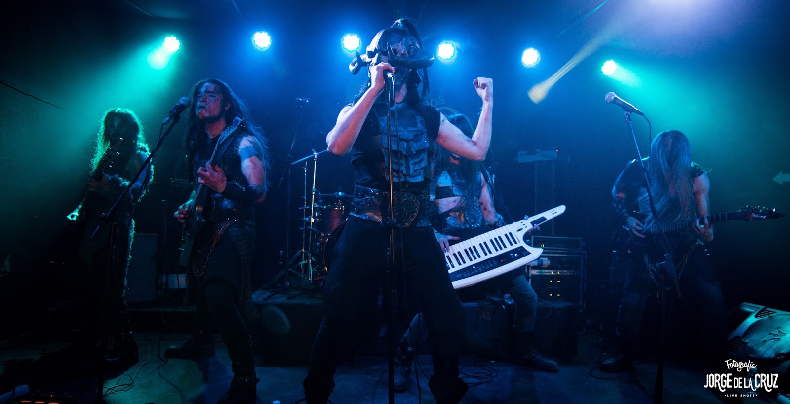 “Raise Your Sword”, dejaba bien claro lo que íbamos a escuchar, viking metal, directo y potente, con una buena puesta en escena, aunque la actitud del grupo no fue la más activa de la noche, quitando al teclado y a uno de sus guitarras que no paraban de mover su larga cabellera en todo momento. No sé si fue por la falta de público o por qué, pero el grupo estuvo un poco frio con el respetable. Eso si sonaron muy bien, dejando buena nota de ello en este primer tema donde destacaron los solos de guitarras y las ambientaciones del teclado, muy bien encajadas a lo largo del repertorio. “Battle Of Asgard”, fue un tema del primer disco, donde se elevó el grado épico de la noche, con unos ritmos muy vikingos, de batalla y unas partes orquestales muy buenas. “Hammer Of Gods” y “Battle Of Asgard”, continuaron con su camino por tierras baldías, en busca de algún pueblo que saquear, una voz muy acorde con el estilo musical, incluso cuando hablaba al público, en el papel estaban metidos, pero faltaba que lo transmitieran al público. De hecho, en “Ghost Division”, hubo unos coros guturales que me gustaron, un recurso que no estaría mal que introdujeran de vez en cuando.