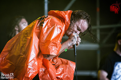 Nos desplazamos hasta la carpa, lo cual a esas horas y con el pedazo de sol que había, era de agradecer. Esta vez nos preparábamos para ver a THY ART IS MURDER, que venía con su nuevo cantante. Algo que muchos fans estábamos deseando ver, ya que cuando se confirmó la asistencia de la banda al festival, todavía no se había producido el cambio. La banda salió a escena y entre ellos destacaba un chubasquero naranja de Jägermeister. Era el nuevo cantante. Salió con ese chubasquero firmado por todos sus fans, ¿por qué? Quizás no tenga un motivo, pero puede tener relación con que el anterior cantante siempre salía a cantar con un chubasquero puesto. Quizás era un breve homenaje. Entre breaks desgarradores, brutalidad y sonido increíblemente perfecto, THY ART IS MURDER hizo que la carpa se llenase de una energía brutal. Con su cantante sin parar ni un solo minuto, llegando a bajar incluso al foso para cantar junto a sus fans hizo de su show una maravilla para los amantes del buen deathcore. Creo que demostraron por qué son una de las bandas más respetadas dentro de este género.