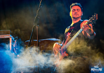 Y por fin, la guinda del pastel, desde Cádiz, BRUTAL THIN. Un concierto del que había muchas ganas de verlo sobre las tablas de Villargordo y la apuesta fuerte de la noche. Con un sonido exterior muy bueno, cosa que no sucedió lo mismo en el interior del escenario, donde los monitores actuaron a medias, el vendaval de Algeciras, se adueñó del escenario. Con potencia y una actitud potente, sonaron los primeros temas “Pierdes tú”, “Carnivore” y “Vas A infringir el orden”. El público adormecido en los primeros compases, despertó por fin con “Dispuestos a Luchar”, sobre todo por el esfuerzo del grupo en animarlos una y otra vez tanto Marcos, Guachi y Víctor, no paraban de alentarlos hasta que Víctor se acercó a ellos bajándose del escenario y pidiendo que se acercaran. A partir de ahí todo fue una fiesta. “Super Dios” sonó brutal, uno de los temas que más me gustan, con unos riffs pesados y contundentes asi como una batería aplastante. Con “Nunca iremos al cielo”, todo el público comenzó a botar, mientras se iban agotando las fuerzas de un largo día tras cada tema. Estos chicos te roban la energía poco a poco, un directazo. “Carcelero” y “Tinto” fueron otros dos momentos de la noche, la primera fue cantada por los asistentes, mientras que la segundo se transformó en el tradicional brindis tintero de la banda. Con “Cocaína” y “Los rockeros van al infierno”, se despidieron dejando huella en la Púa.