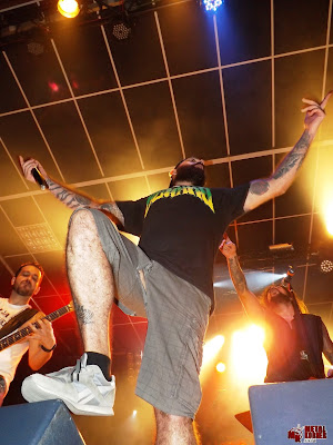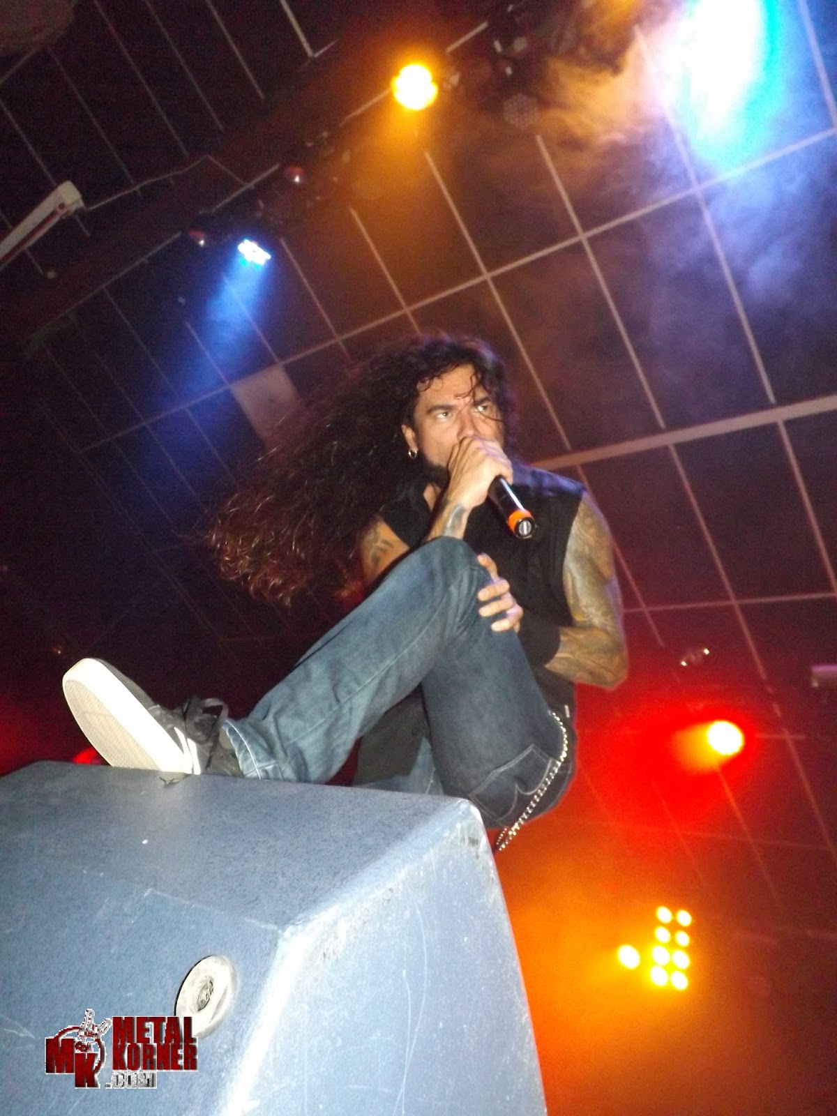 Leo pide a Toni Mero Mero (vocalista de la banda CUERNOS DE CHIVO) que suba a las tablas, «No hay más canciones para ti» Mero Mero no cesa de moverse de un lado a otro del escenario como animal enjaulado, es un estallido de energía en estado puro, escuchar sus guturales en directo es una pasada… se bajan todos del escenario menos Carlos, el cual se marca un solo de batería fascinante . «Soy libertad» no podía faltar, con dos titanes arriba del escenario y el publico totalmente rendido a sus pies, saboreamos cada minuto del directo.En el tema «Resurrección» (SARATOGA) Leo empieza a invitar al publico a hacer pogo y por supuesto, ni lo dudamos un instante. Finaliza con «Hijo de la luna» donde hace más de una frase el guturales y nos deja con la boca abierta. Antes de dejar el escenario pasada una hora casi de la medianoche, nos pide que nos quedemos, que respetemos la siguiente banda que va a pisar las tablas, lo cual llega a pedirlo como favor personal. También nos dice que estará al final firmando discos en la zona de merchandising.
