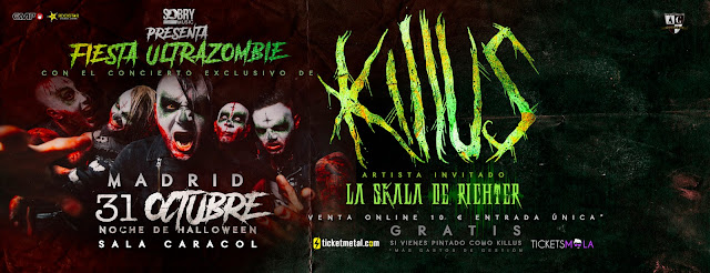 La noche del 31 de octubre tendremos fiestón de Halloween con concierto exclusivo de KILLUS (+ LA SKALA DE RICHTER) en la SALA CARACOL MADRID. Al día siguiente es festivo así que la noche será larga e intensa desde las 20:00 h.