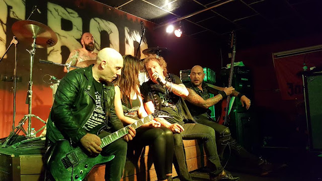 JOLLY JOKER, la banda compuesta por Lazy Lane al micro, Yannick a la guitarra, Luke a las 4 cuerdas de acero y Kickstarts a las baquetas, entraron fuerte con el primer tema de su último álbum: No way out. El público empieza a apelotonarse en las primeras filas mientras Lazy Lane termina la primera canción con un grito desgarrador para que el grupo continúe con la siguiente canción, She Starts, mientras el introduce a la banda brevemente. Notamos la experiencia encima del escenario, a pesar de ser tan solo cuatro personas el escenario se les queda pequeño. Yannick nos hace disfrutar con un pedazo de solo y, al terminar la canción, con el rift de Hey You, el cual corea el público mientras este lo ejecuta con una maestría envidiable.