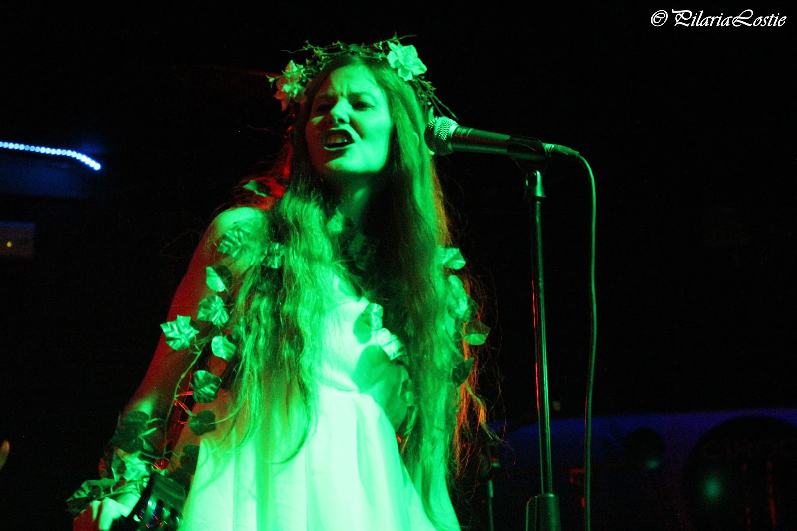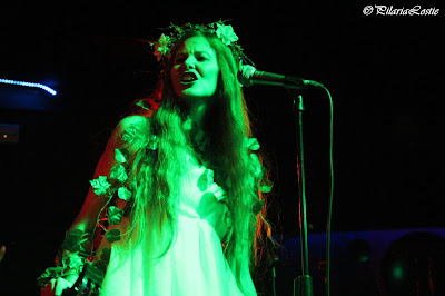 El escenario estaba completamente oscuro cuando de repente una angelical voz se abrió paso entre el silencio. Era la magia procedente de la garganta de Haydee Mariño que ataviada cuál ninfa del bosque, con enredaderas incluidas, daba inicio a la actuación con “Faint Song”. Segundo tema del quinto disco de