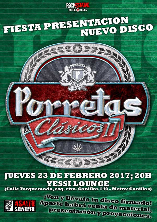 ‘Clásicos II‘ saldrá a la venta el 24 de febrero pero ya está disponible en preventa. El disco se puede reservar con productos exclusivos a precios rebajados que van desde el disco firmado + chapa por 11,95 € hasta un superpack que incluye artículos de coleccionista como cervezas personalizadas de PORRETAS, jarra o un librillo de papel de fumar con el logo del grupo.