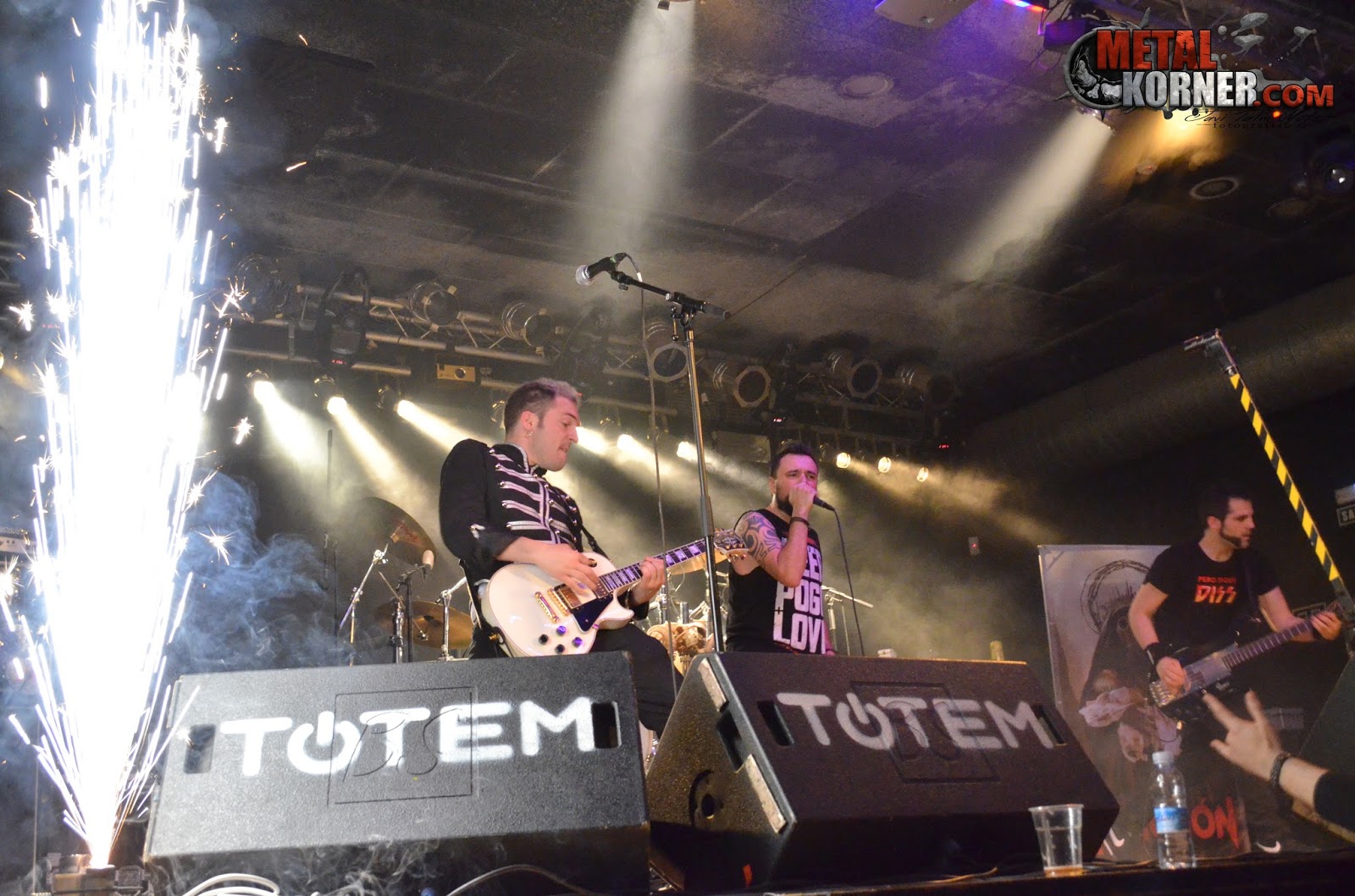No pasa ni media hora cuando TRACCIÓN hace acto de presencia en el escenario de la ya repleta sala Tótem. Cadáver de la Dignidad es su primer tema, con cuyos riffs iniciales ya vemos el cambio que la banda ha dado musicalmente hablando: más velocidad, más contundencia, más pegada. Hay que recordar que el grupo viene de unos cambios de personal y llevaban casi dos años escondidos, digámoslo así, mientras preparaban un nuevo asalto. Los hermanos Zarzosa son los culpables de toda esta trama: Alfonso y David, a la guitarra y al bajo respectivamente. Nos presentan su tercer disco, Renacer, de la mano de Dromedarios Records. Acompañados esta vez por Daniel Lizarraga “Dino” a la batería y Tol a la voz.