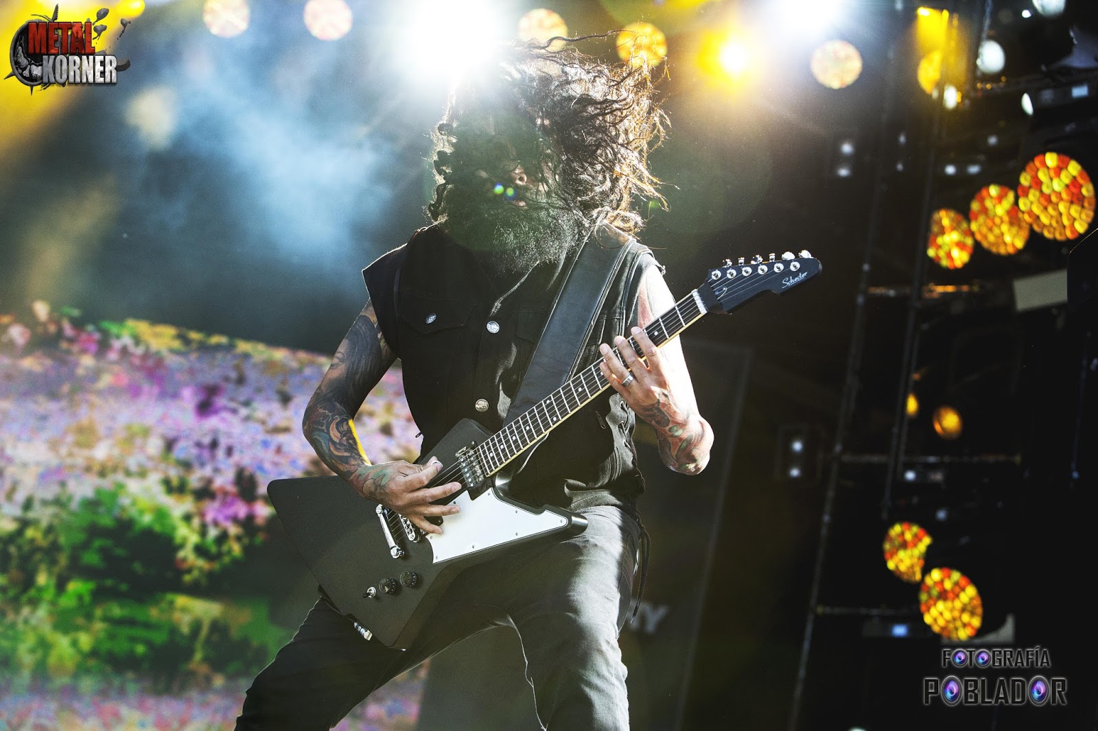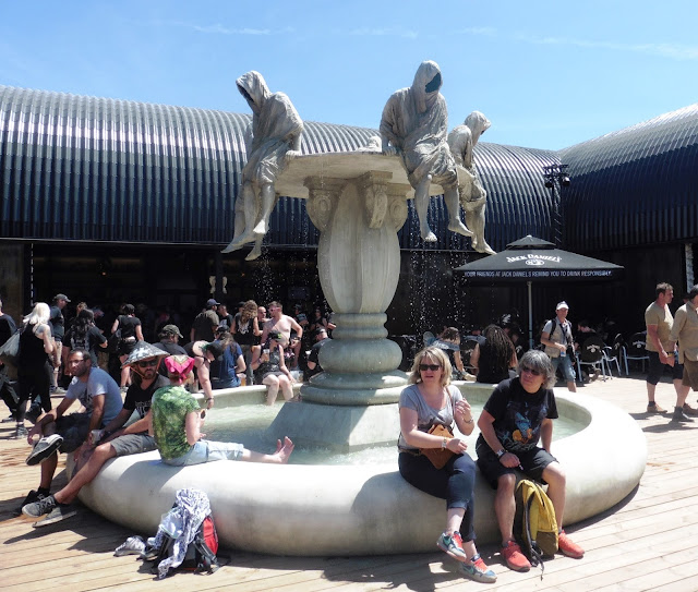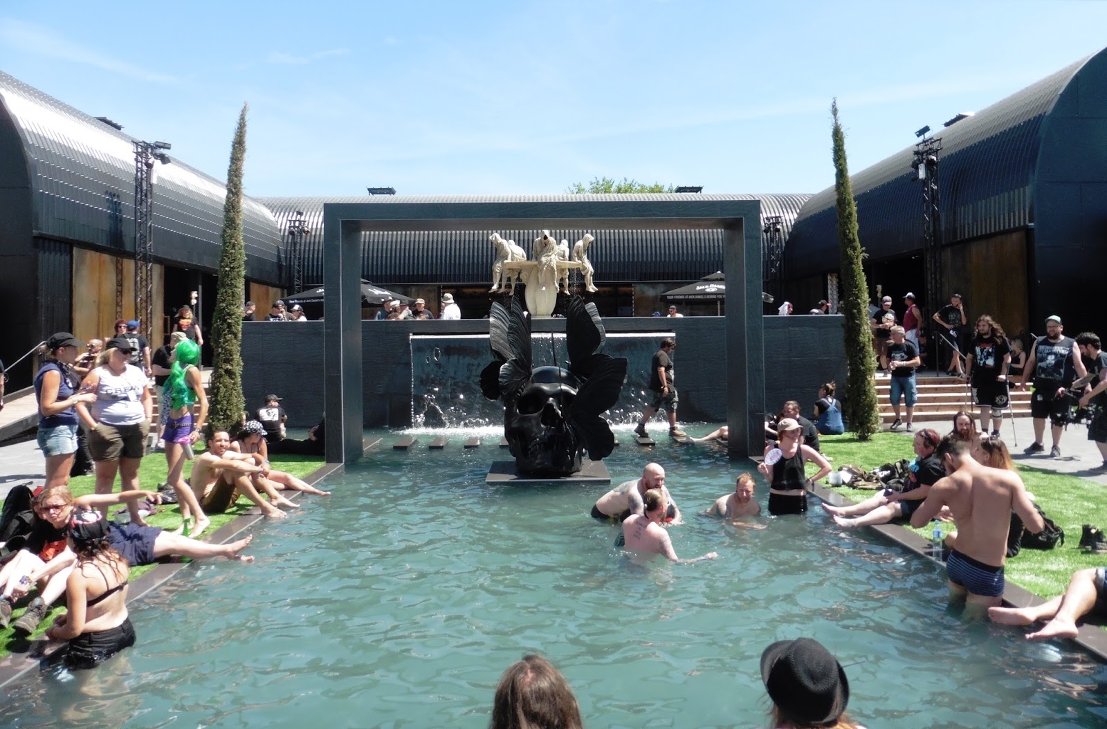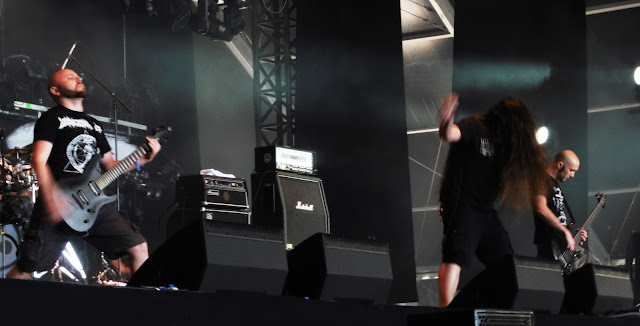 Después nos quedamos a ver BETRAYING THE MARTYRS pero tras un par de temas concluimos que su metalcore no era de nuestro agrado. En esta actuación vi el primer circle pit del festival y algún crowdsurfing. Aprovechamos para ver todo el recinto y las novedades del mismo pero este año fueron pocas. Se había ampliado la zona de los escenarios principales para evitar apreturas y se estuvo un poquito mejor. Adicionalmente ampliaron las pantallas para que se pudieran ver mejor las actuaciones. Se puso la zona de discapacitados justo debajo de la zona VIP pero eché en falta que les pusieran sombra, los pobres debieron pasar muchísimo calor. En el resto de espacios del festival no detecté novedades.