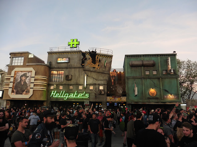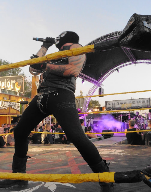 Nada más entrar a la plaza Hellcity donde están las tiendas y por donde se accede al área del festival vimos un ring con un escenario pegado. Ya por la noche disfrutamos en ese ring y en ese escenario de una actuación muy entretenida por parte de THE ROCK’N’ROLL WRESTLING BASH.