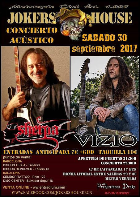 Este fin de semana tenéis una cita con SHERPA (ex Barón Rojo) y RAMÓN VIZIO en la sala Jokers House en Barcelona, recordaros que el aforo es limitado, así que no os lo penséis mucho.
