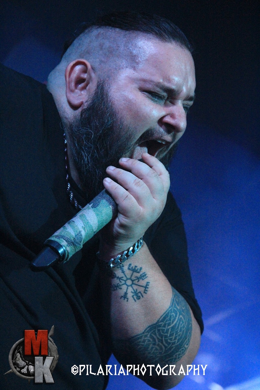 Se notó el trabajo en los ensayos, ya que hace tan solo unos meses sus actuaciones eran muy estáticas. “Morrigu”, un tema impresionante. No obstante, llegó el primer respiro y después de una corta interacción (en eso tienen que mejorar todavía muchísimo) entró “Wolfmoon”, un tema que va camino de convertirse en un clásico. Tema donde también se notó el trabajo de la puesta en escena cuando el grupo se abrió para dejar vía libre a los guturales de Andy el Batería de la banda.