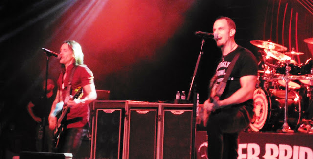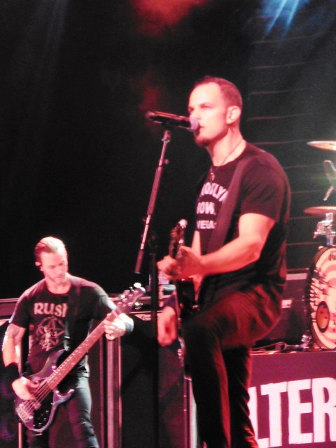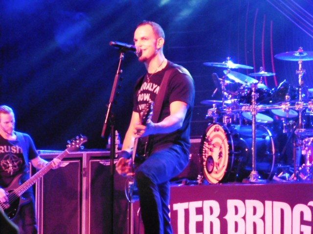 ALTER BRIDGE. Arrancaron con «The writing on the wall» pero con el segundo tema, el conocidísimo «Come to life» ya nos tenían a toda la audiencia en el bolsillo. Encadenaron los temas «Addicted to pain» y «Ghost of days gone by» y se veía a la gente encantadísima, cantando el estribillo y botando sin parar.