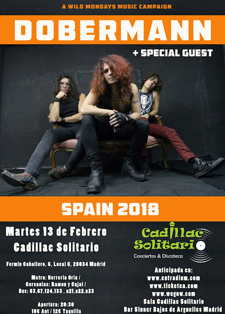 El trio italiano de rock DOBERMANN actuará el proximo martes 13 de febrero dentro de su gira «A Wild Music Campaign Tour 2018». La cita es el 13 de febrero en la sala Cadillac Solitario de Madrid. Os dejamos con el poster y resto de información necesaria: