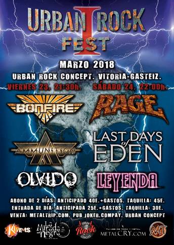 Ahora nos lo demuestran por todo lo grande y con una gran apuesta: la celebración de su primer Urban Rock Fest I, un festival que contará con artistas de la talla de RAGE, BONFIRE, AMMUNITION, OLVIDO, LEYENDA y LAST DAYS OF EDEN.