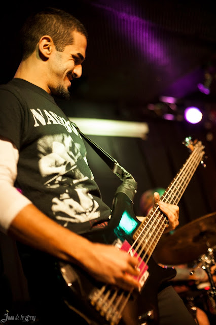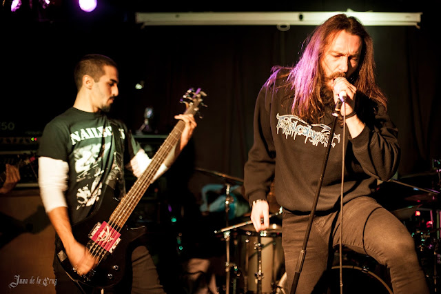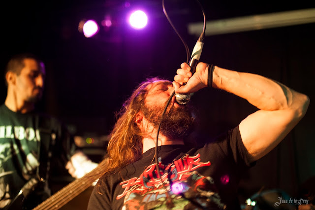 Su estilo brutal y descarnado,su magistral y compuesta percusión (Felipe), su voz gutural y potente de principio a fin, y las nutridas guitarras (Yanko y Jesús) fue lo que hizo que más me gustara, en una noche en que el nivel era muy, muy alto, en serio, me sorprendió el nivel de las tres bandas, también porque me gustan siempre los estilos llamados underground, donde la autenticidad se destila sola.