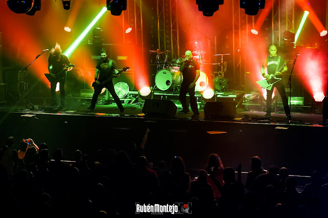 Era la tercera vez que veía a SOMAS CURE en directo, así que puedo afirmar que esta última me decepcionó en parte, ya que vi el show un poco más relajado y calmado que las otras dos veces anteriores (en el Barcia Metal Fest y en Ronda Fest). No se si en parte fue por la gripe que sufría su baterista Darío (lo cual supimos gracias a Txema en uno de los descansos entre temas). El caso es que el show tuvo una energía menor de la que esperaba. Pese a todo el concierto fue muy correcto, sonoramente estuvo bastante bien (mejor que las otras dos veces que los vi), aunque sufrí como fotógrafo con las luces, con un abuso de focos rojos y luces estroboscópicas.