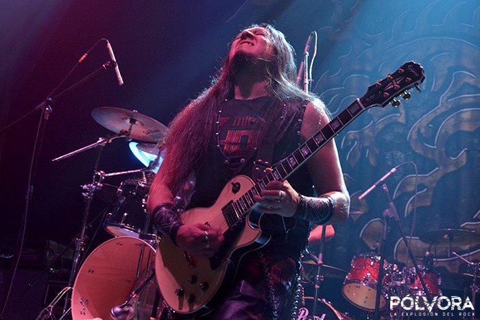 Otro momento mágico de la noche fue por parte del maestro Alberto Rionda con un solo de guitarra fenomenal. Que manera de tocar la de este músico, interpretando Santa Bárbara, todos los presentes estaban enganchados, unos momentos sensacionales, el feedback con el público era brutal, dividiéndolos en dos y haciéndoles gritar a modo de competición por separado. No cabe duda. Alberto en la banda siempre se gana a los fans.