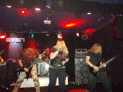 Seguimos con DEVIL IN YOU, banda sevillana que practica un Death ´n Roll muy en la linea del mas clásico death metal. Formados por Rubio y Jose a las guitarras, Thedy al bajo, Trujillo a la batería y Marta al micro. Una actuación en la que se intento tirar de la interacción del publico, pero este seguía frío. Aun así, 20 minutos bien aprovechados, incluso hubo algún que otro pogo para ir calentando la sala.
