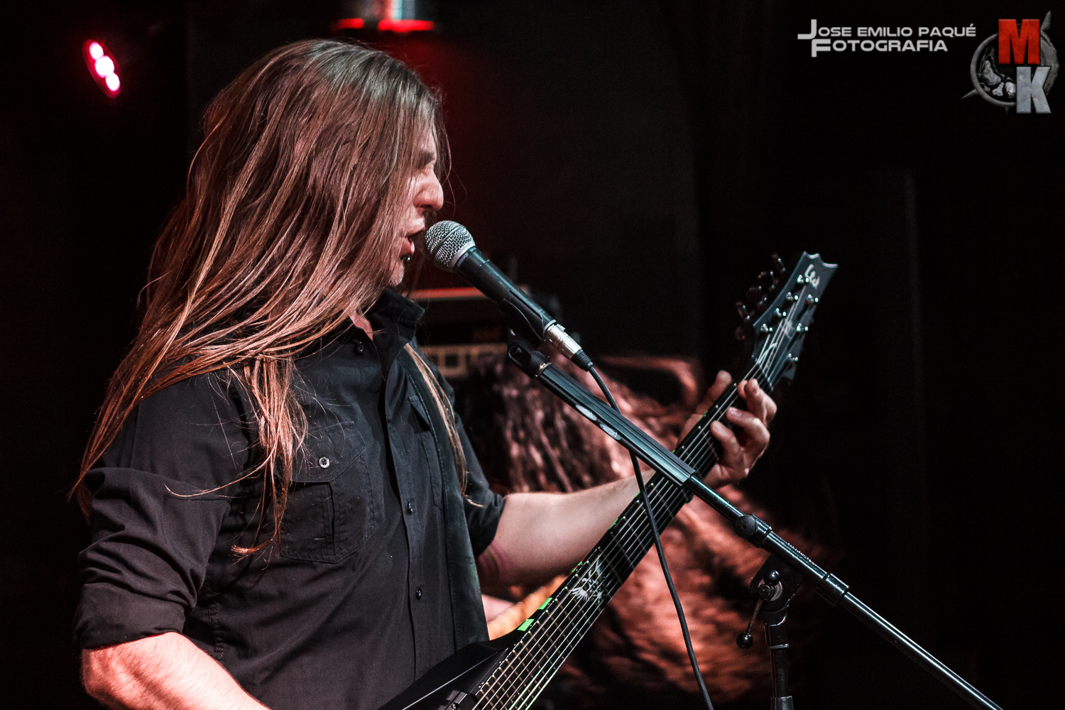 Los blast beats se sumaban de forma continua una y otra vez a los rápidos y oscuros riffs de guitarra. La poderosa y gutural voz de ultratumba de Manu no dejaba de resonar por toda la sala helándonos la sangre, mientras el espídico doble bombo prometía arrancarnos nuestro acelerado corazón del pecho. De vez en cuando se apiadaban de nosotros cediendo el protagonismo a las seis cuerdas, que se lucían con sus formidables solos de guitarra y así de camino nos daban un pequeño respiro.