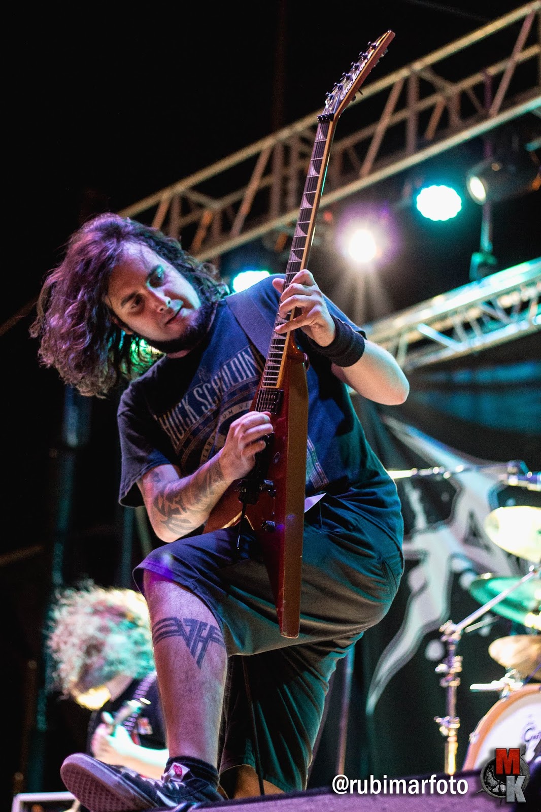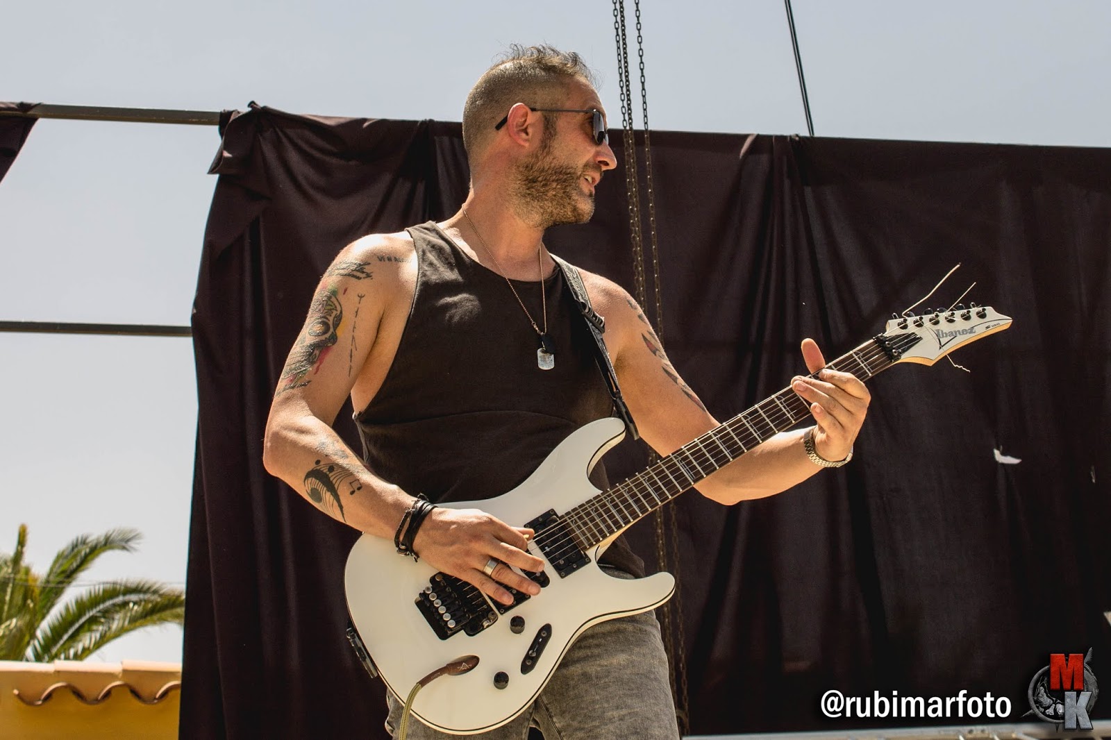 Encienden motores con Felicidades. Los temas, por lo general, iban desarrollándose con riffs veloces y en otros momentos a medio tiempo, pero siempre cargados de tralla y acompañados por los guturales de Víctor. Un ejemplo claro de ello era la siguiente de la lista, El poder de un dios. Las condiciones meteorológicas no estaban a su favor… aquello continuaba siendo un maldito caldero. Pese a ello y peleando contra el calor, los de Maracena empezaban a sacar los primeros saltos entre los asistentes.