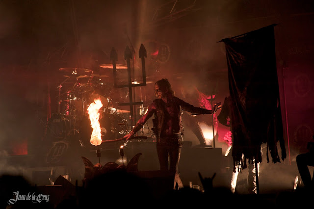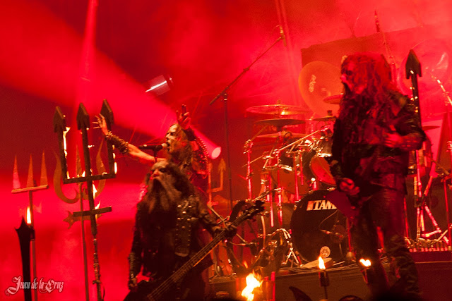 La puesta en escena es sin duda un ritual completo al maligno: las llamas pueblan el escenario por todas partes, se ven cuchillos rituales, tridentes ardiendo, altares con toda clase de pestilencias. Todo esto hace que la banda parezca un grupo de diablos cocinando la música del mismo infierno. El directo me gustó sobremanera, aunque los he visto más fuertes en salas más pequeñas, pero eso es lógico, su nuevo trabajo está diseñado para el directo más que los otros, aunque prefiero sus álbumes anteriores, sin menospreciarlo ni disgustarme.