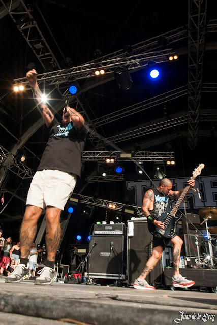 Después del tan necesario reposo y de que el calor nos cociera en el camping como sucede en los festivales, aunque el tiempo fue estupendo (calor no muy agobiante de día y fresquito por la noche) volví a la zona de conciertos, y con ciertas dudas, me decanté por algo diferente para mí, me decidí a ver a los californianos TERROR, a disfrutar de un poco de hardcore punk americano. La verdad que apenas los había escuchado, si había oído hablar de ellos, y bueno, me llamó la atención la variedad de público.