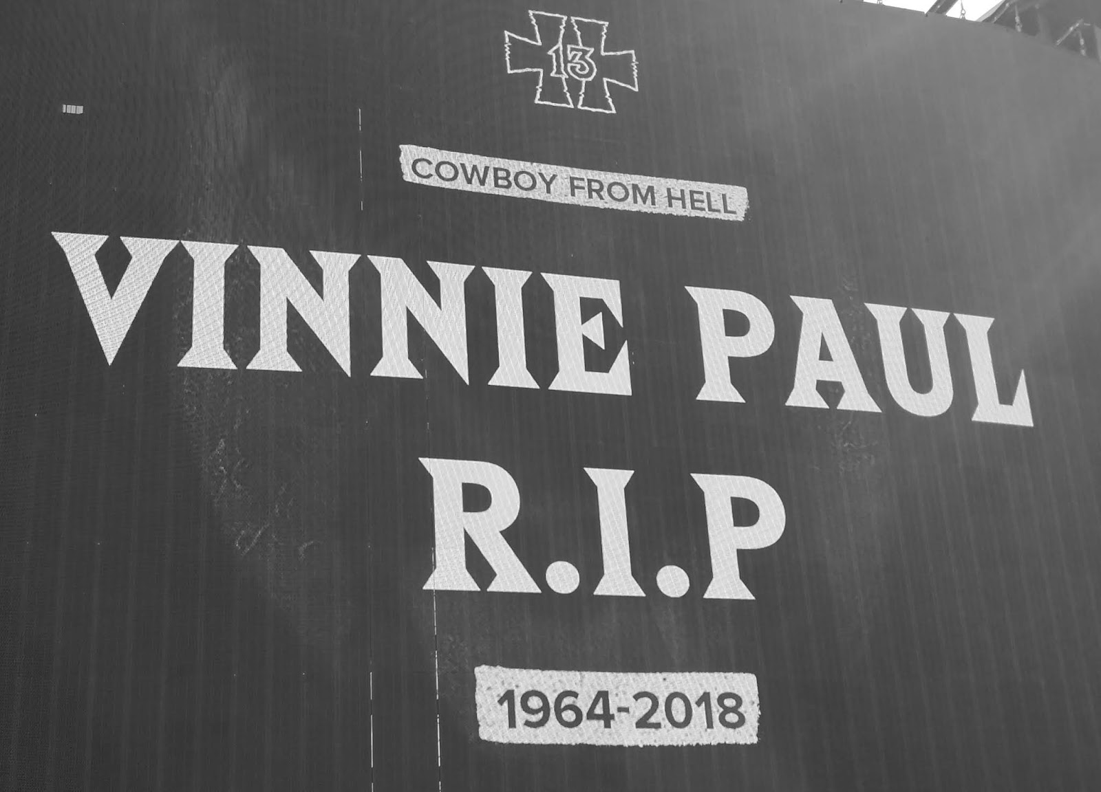 Antes de la siguiente actuación el festival anunció a través de sus pantallas el fallecimiento de Vinnie Paul, conocido por su enorme labor como batería de los legendarios Pantera.