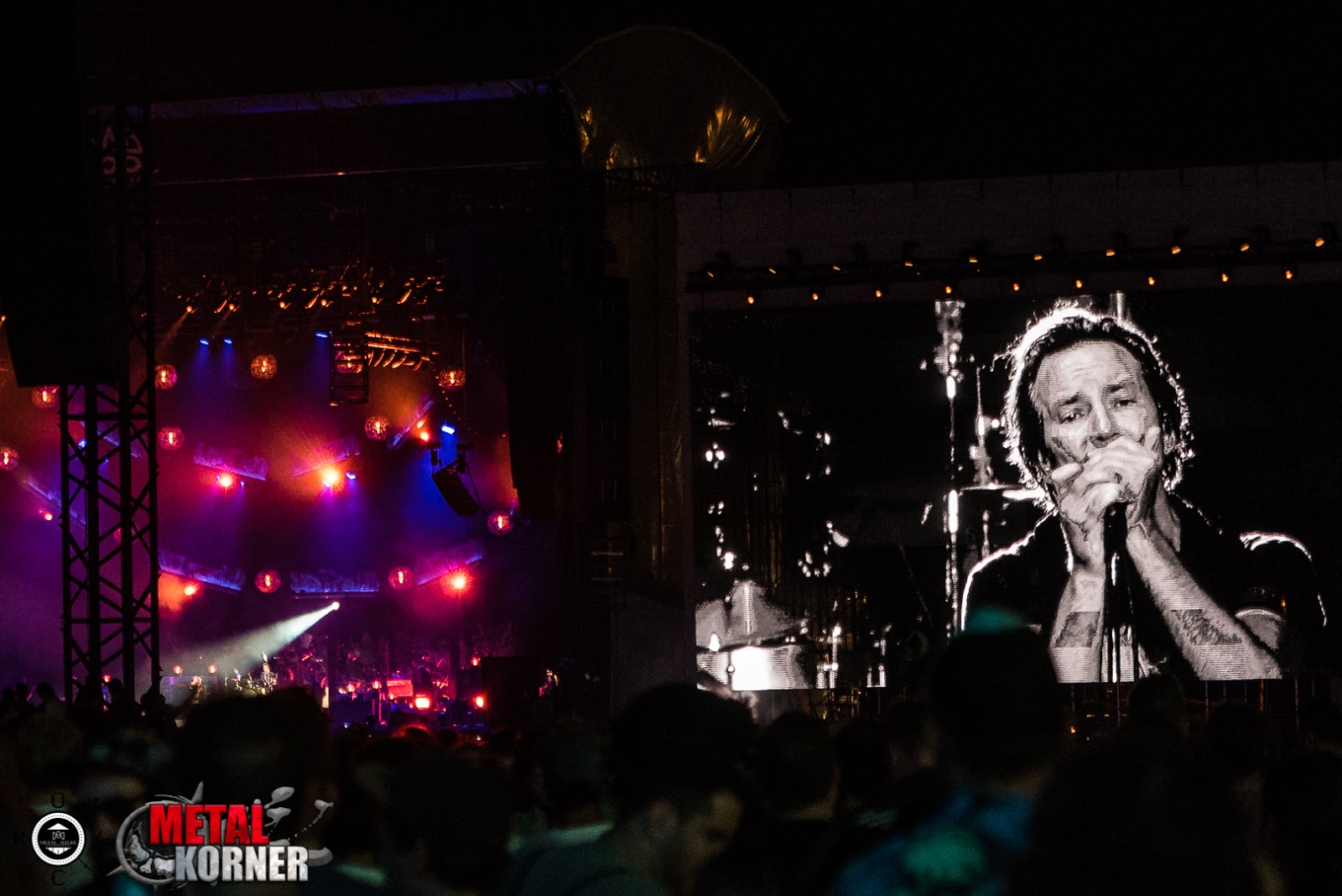 La impresión de Miguel Alegre, el fotógrafo de Metal Korner, fue muy positiva. El sí pudo ver la actuación entera y nos comentó que su pop psicodélico sonó muy bien. Llevaban unas luces con láser espectaculares que coincidieron con el atardecer por lo que visualmente estuvieron geniales. Hubo un par de explosiones de confeti muy vistosas. Sin duda era uno de los grupos más esperados de la jornada y prepararon muy bien el ambiente para PEARL JAM.
