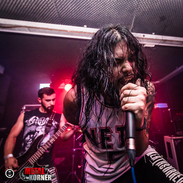 Con media hora de retraso sobre la hora de inicio anunciada comenzaron los madrileños DEATHSURRECTION. Herederos del metal de los noventa (Pantera, Sepultura) saltaron al pequeño escenario de la Siroco dispuestos a dar tralla. Sonaron temas potentes que hicieron botar el público presente que disfrutó de su gran directo. A las voces, Gabriel Jester, ejercía de frontman y animaba al público a los respectivos wall of death, incluso participó en varios de ellos bajándose del escenario. Dejaron buen sabor de boca y agitaron al público que se dio cita con lo que no pudo empezar mejor la noche.