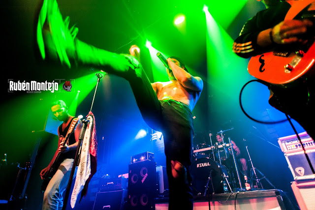 Como ya íbamos justos de tiempo, no tardaron en subirse a las tablas esta banda que cabalga entre Sevilla y Málaga. El ambiente, como ya hemos dicho, no terminaba de ser del todo lo caluroso que se pedía siendo éste el combo que continuaba la estela de SWEET HOLE, pero ello no quitó para que el público ya empezara a corear «BLEEM» a todo grito, con ganas de que empezaran, una vez comenzado el tema que sirvió de introducción.
