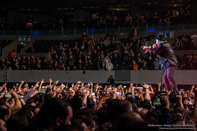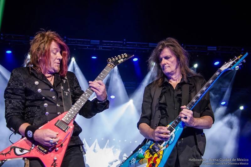 Andi Deris y Michael Kiske ambos cantando a todo pulmón, interactuaban de una forma brillante. Andi, saludando a todos en castellano, «¡Hola a todos! ¿Cómo están?«, se sorprendió de las fiestas de Muertos que se celebran en México, felicitó a todos diciendo «¡Feliz Día de Muertos!«.
