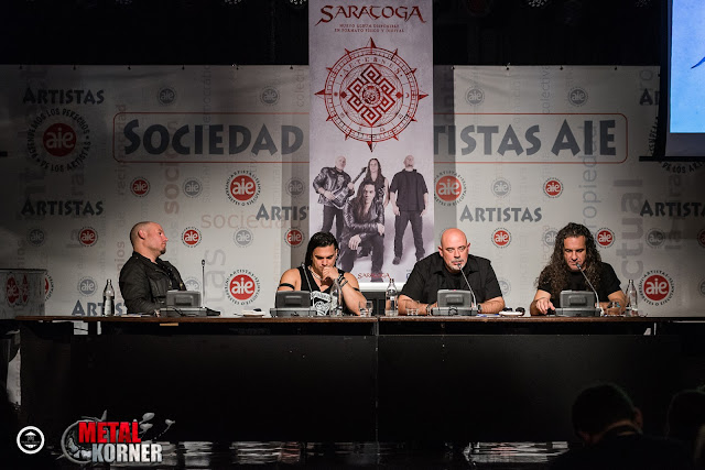 El pasado miércoles acudimos a la rueda de prensa donde, ante un nutrido grupo de compañeros de prensa, SARATOGA presentó su nuevo disco. El evento comenzó con la proyección del videoclip del primer single del álbum (y primer tema del disco) Olvidado de dios que llevaba una semana publicado y circulando en redes: