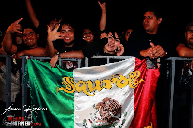 La fiesta seguía con La mujer dormida, un brillante tema inspirado en una leyenda mexicana de dos volcanes Popocatépetl e Iztaccíhuatl, aquí me impactó mucho la reacción del público, los ojos de los seguidores de SAUROM, se veían iluminados y sus rostros de felicidad al cantar la canción, ¡Qué brillante momento!