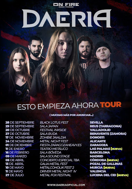 Por otro lado, DAERIA, actualiza gira, añadiendo fechas en Las Palmas, Murcia y en el METAL FOX de Lucena del Cid (Castellón). Próximamente habrá más confirmaciones. Hasta entonces, para 2019: