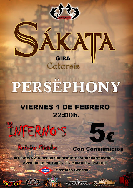 La banda madrileña SÁKATA ya tiene nueva fecha de su gira presentación de Catarsis. Será el próximo 1 de febrero en la Sala Inferno’s Rock Bar de Móstoles (Avda. Portugal, 21, Metro: Móstoles Central). Para esta ocasión estarán acompañados por los también madrileños PERSËPHONY.