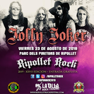«Tras las confirmaciones de H.E.A.T como cabezas de cartel y de THE UNITY, le toca el turno a la banda nacional. Los valencianos JOLLY JOKER vendrán a patear los culos del público del Ripollet Rock Festival 2019