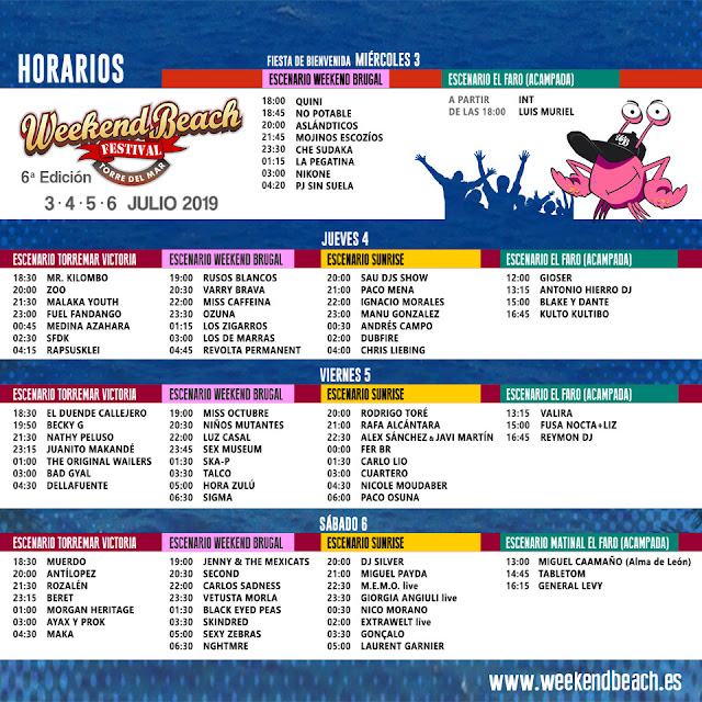 Weekend Beach Festival hace públicos sus horarios por escenarios y días. Cuatro días, cuatro escenarios y música ininterrumpida desde las 18h de la tarde y hasta más de las 7h de la madrugada.