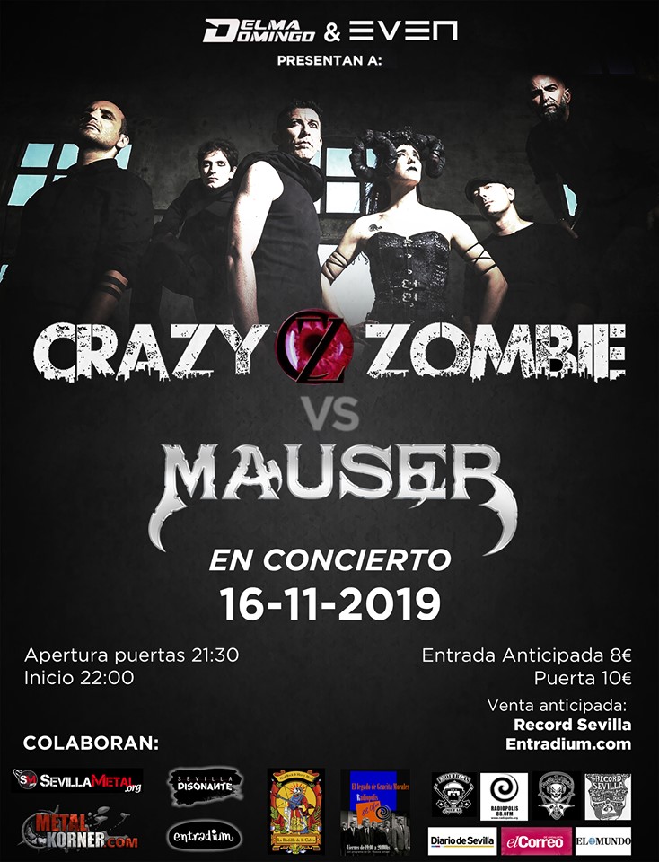 CRAZY ZOMBIE anuncia una pequeña gira por Andalucía, antes de su puesta de largo, que será el día sábado 16 de Noviembre en la Sala Even y que Delma Domingo nos los traerá junto a los también sevillanos MAUSER.