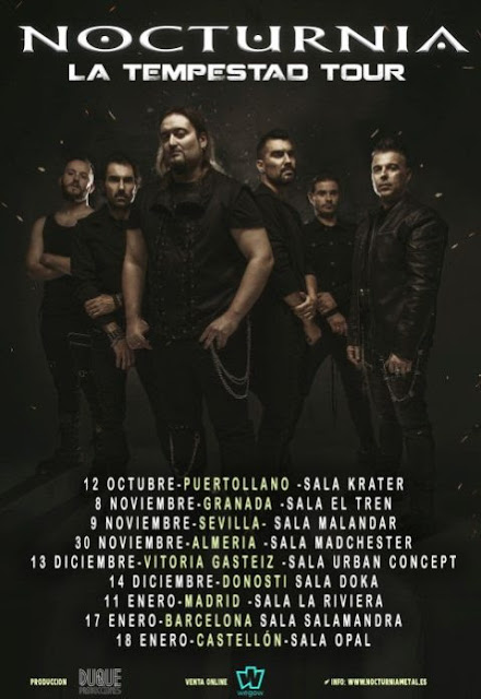 «Comienza LA TEMPESTAD TOUR», el proyecto más ambicioso de la banda toledana NOCTURNIA, en el cual no han escatimado en medios, llevando a su sexto álbum de estudio un paso más en su carrera a nivel compositivo y de producción. Potencia y melodía regida por Alberto Rionda (Avalanch) desde su estudio Sanctuarium de Asturias.