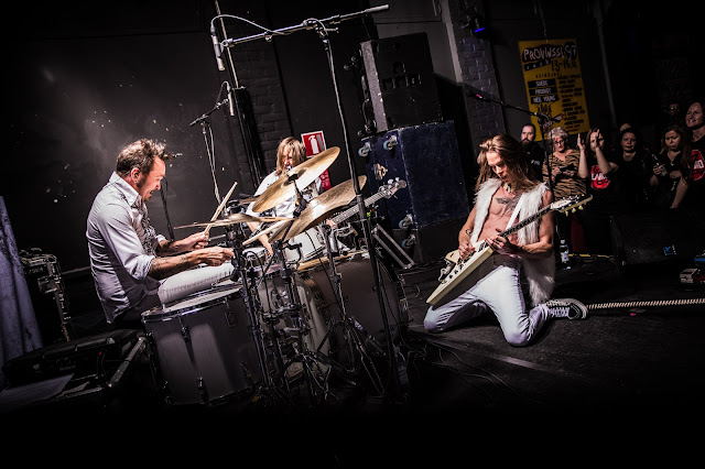 La noche empezó puntualmente en el escenario secundario. El trío que compone THE BLANKO salió con su ya característica vestimenta blanca y empezó la actuación con Slave To My Passion, canción muy enérgica y con potentes riffs, que también abre su último disco Stimulation Paradise. Tras animar al público con esta primera canción pasaron a Face The Fear, uno de los sencillos de su segundo disco. La gente respondió muy bien y seguía animándose con Sweet Explosion y Eternity, ambas de su último disco y en las que el público participó animado, aunque a veces esto es difícil de percibir en las audiencias finlandesas.