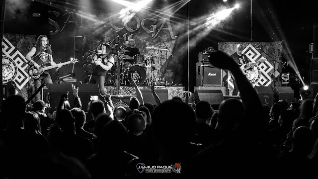 El segundo asalto de la noche corrió a cargo de una banda ya conocida no solo en nuestro país, si no a nivel internacional. Ni más ni menos que SARATOGA. La banda volvía de compromisos en Sudamérica para comenzar a presentar su nuevo álbum Aeternus en nuestro país. Leyenda viva del heavy metal español nos prometía toda una lección sobre el escenario.