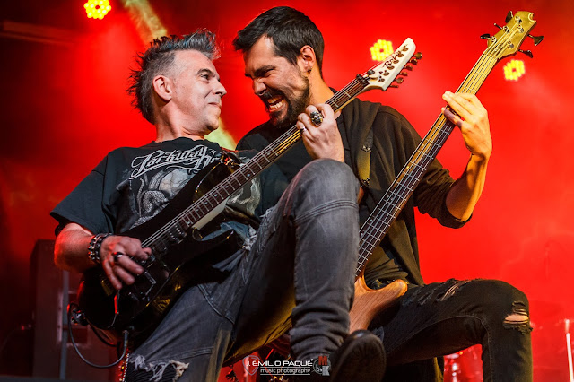 Cada uno en su rol hacía que la maquinaria avanzara viento en popa, a golpe de metal. Daba igual si eran temas nuevos como la pegadiza Tres ahorcados o la eterna y potente Las puertas del Cielo, todas eran coreadas por el público. Incluso en los momentos más introspectivos, donde podíamos disfrutar de un gran solo de Dani o también de las peripecias rimbombantes a lomos del bajo de Niko, el concierto no perdía ni una ápice de intensidad, teniendo siempre a los asistentes con la mirada fija en el escenario, sin perderse nada de lo que allí acontecía.