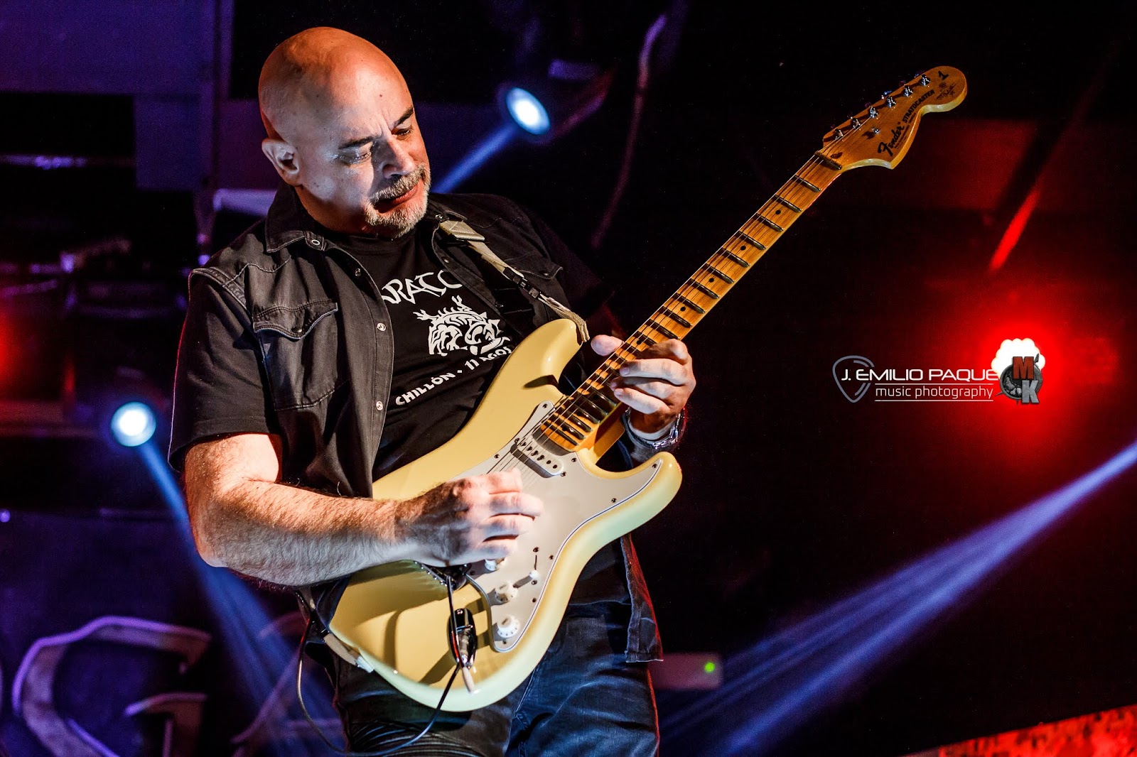 A las seis cuerdas se incorporaban Javier Villanueva y Manuel García de Acilu, los cuales nos dieron cada uno todo un recital del buen hacer sobre las 6 cuerdas. Todo un espectáculo. Y es que la banda ha adquirido sobre todo mucha mayor presencia en directo con sus dos últimos fichajes. Muy activos y regalando poses continuamente a los asistentes. Supieron dar la talla tanto en temas nuevos como Tempestad, Hijos de la derrota o Heroes de bronce, así como en otros ya más rodados como Baraka o Alza los puños, hermanándose perfectamente con la batería de José Roldán y los teclados de José Gómez-Selles. Todo un sonido convertido en una auténtica atmósfera mágica que embriagó a los asistentes.