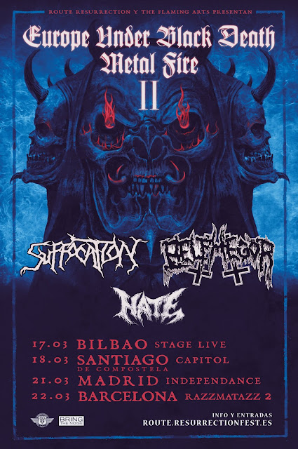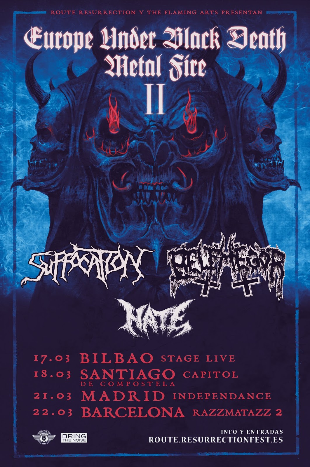Los amanes del metal extremo están de enhorabuena. La organización del Resurrection Fest acaba de confirmar una nueva gira «Route Resurrection». SUFFOCATION y BELPHEGOR nos visitarán juntos en una gira que encabezan ambas bandas durante el mes de marzo de 2020. Para ellos abrirán los polacos HATE y otra banda que aún está por confirmar. Esta gira, llamada “Europe Under the Black Death Metal Fire Tour II”, hará cuatro paradas en España: Bilbao, Santiago de Compostela, Madrid y Barcelona.