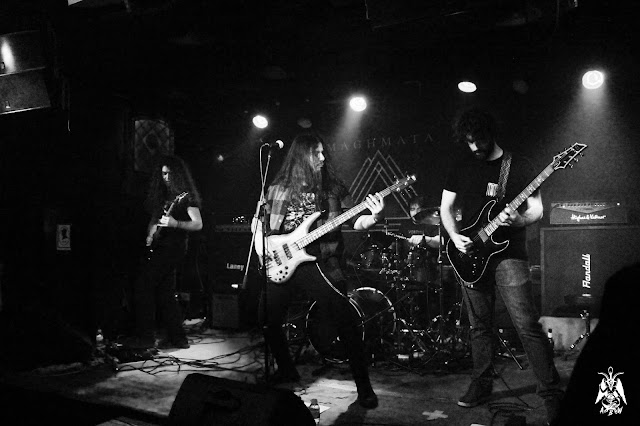 La formación presentaba por vez primera su proyecto, así que no era de extrañar que gran parte de los asistentes en las primeras filas, fueran ya conocidos de la banda, no obstante el resto también estábamos expectantes. Su música y estilo aún tienen algo que decir en nuestros días. Por lo que había podido escuchar previamente, MAGHMATA se nutren del death metal primigenio, con melodías y riffs que se acercan al groove e incluso al rock. Iniciaron su directo progresivamente, llevándonos a todos al terreno en el que la banda quería situarnos. Lo cierto es que el trabajo de estos chicos tiene un emblema muy personal, incluso no siendo mi especialidad, pude ver que se habían preparado muy bien para dar lugar a un metal más rítmico que mezclaba voces guturales con limpias sin excederse demasiado, sin convertir el estilo en algo alienígena. A medida que avanzaba el show lograron captar la atención de los presentes con temas variados y tallados en un setlist, a mi modo de ver, de lo más estudiado.
