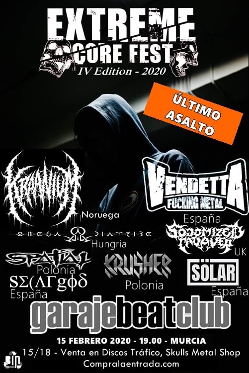 Os recordamos que la próxima y última edición del EXTREME CORE FEST tendrá lugar el próximo 15 de febrero en Garaje Beat Club de Murcia, recibiendo otro año más a bandas de los sonidos más extremos provenientes de toda Europa.